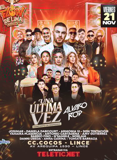 El reconocido cantautor peruano Álvaro Rod confirma oficialmente la participación de Daniela Darcourt, Yahaira Plasencia, Josimar, Armonía 10, Son Tentación y más de 10 artistas peruanos reconocidos en su esperado concierto de despedida, un espectáculo que marcará el cierre de una etapa inolvidable en su exitosa carrera musical. La cita será el viernes 21 de noviembre en el Centro de Convenciones Coco´s de Lince, donde el artista ofrecerá el show más importante y emotivo de su trayectoria.