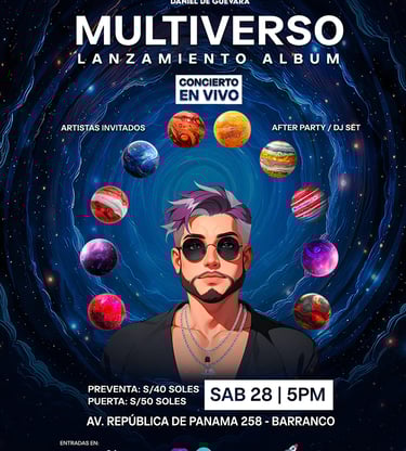 El cantautor y productor peruano Daniel de Guevara lanza su segundo álbum de estudio, titulado Multiverso, disponible desde el 27 de junio en todas las plataformas digitales. El estreno será celebrado con un concierto íntimo el sábado 28 de junio a las 5:00 p.m. en Brunch Republic (Barranco), con una capacidad limitada de 150 personas.