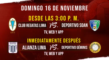 3:00 p. m. – Club Regatas Lima vs. Deportivo Soan