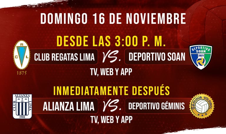 A partir de las 3:00 p. m., las chorrillanas del Club Regatas Lima se enfrentarán a las panteras de Deportivo Soan, en un encuentro donde ambas escuadras se jugarán el honor y buscarán escalar posiciones en la tabla.