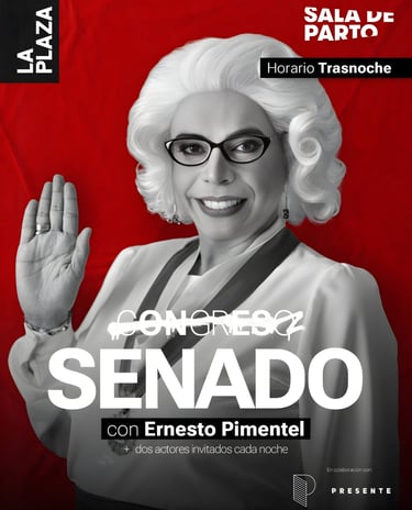 SENADO es una colaboración entre Teatro La Plaza, Sala de Parto y Presente. La obra se estrenó originalmente en 2017 bajo el título Congreso y ha tenido varias temporadas exitosas desde entonces. Esta nueva versión llega actualizada y en sintonía con la realidad actual.