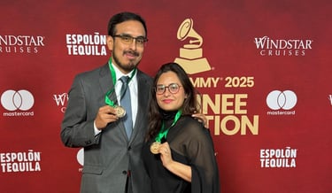 Los peruanos Daniela y Miguel Tomas llegan a los Latin Grammy 2025 para celebrar su nominación por el álbum "Por esas trenzas" de Lourdes Carhuas