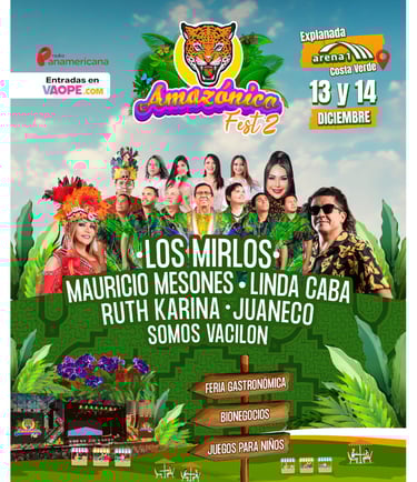 Mauricio Mesones llegará a la Costa Verde de San Miguel para ofrecer un espectáculo inolvidable en el Amazónico Fest 2025, donde el exponente más influyente de la cumbia amazónica presentará un show cargado de identidad, ritmo y orgullo por nuestras raíces. El artista compartirá escenario con grandes representantes de la música de la selva como Los Mirlos, Juaneco y su Combo, Ruth Karina, Linda Caba, entre otros.