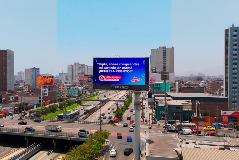 Su más reciente activación, “El Cuidado de Siempre”, desplegada en más de 20 pantallas digitales en Lima, Piura, Chiclayo, Trujillo, Huancayo, Cusco, Arequipa e Iquitos, llevó a las calles mensajes reales de madres peruanas seleccionados entre más de 500 frases recibidas durante una convocatoria nacional.